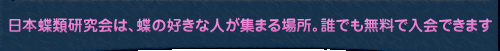 2010年1月、日本蝶類研究会のHOMEは引っ越ししました。通常のアクセスおよびブックマークは http://choken.net/ にお願いします[ケータイからのアクセスを考慮して振り分けされる仕組みになっています]。参考までに、現行のHOMEは http://choken.xsrv.jp/home/ になります。なお、このページのアドレスは http://choken.net/pc.html で、しばらくはここに留保されます【延】